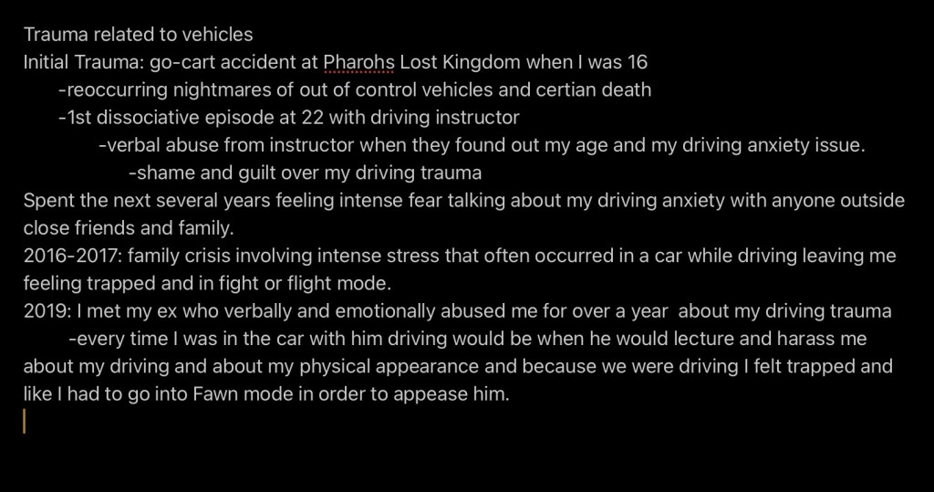 I used to really struggle with insecurities surrounding the fact that I don’t drive. In a culture that views driving as a necessity as well as a ride of passage into adulthood, I found myself feeling inadequate. Why do I still struggle with driving- related trauma in my thirties?